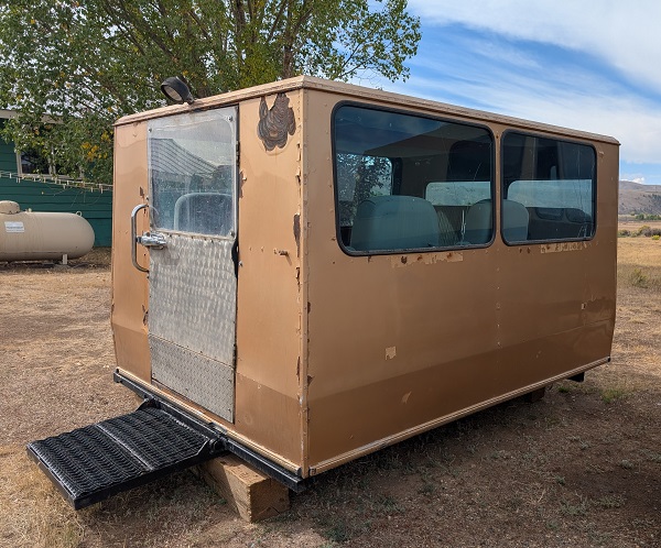 8 Passenger Heated Cabin for a Pisten Bully Snowcat ( Snowgroomer ) Made by Rocky Mountain Tank. Will fit a PB 100, 300, 400,600. 105" long x 7' wide x 64" tall. Very spacious interior for being a smaller cabin. Inside cabin is in great condition, seats are all good. Outside condition needs some lovin but nothing a new paint job or wrapped won't fix. $5000 USD