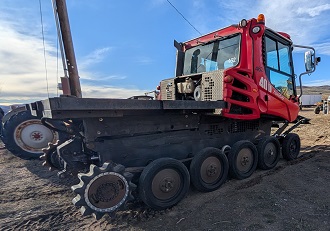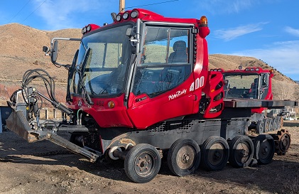 Used Pisten Bully PB 400 Snowcat ( Snowgroomer ) for sale. This Snowcat was used as a push and haul cat with steel diamond plate deck with tie down loops for easy hauling of equipment, fuel, etc...NO tiller. 13,162 hrs, Steering wheel, Cummins QSL 9 engine. Good blade, tracks, glass. $30,000 USD